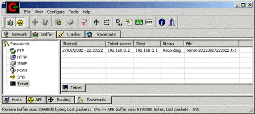 запущена telnet сессия. Для многих протоколов Cain просто извлекает