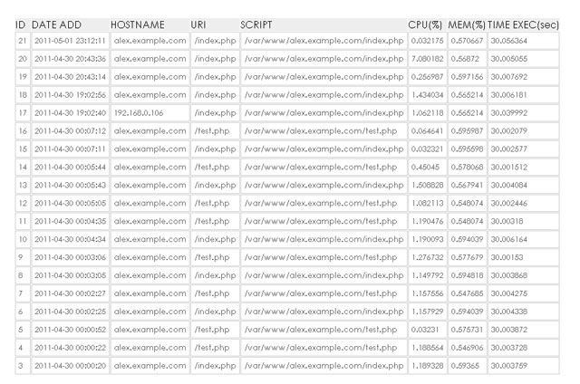 Вышеприведенная конфигурация модуля позволяет отслеживать запросы к php