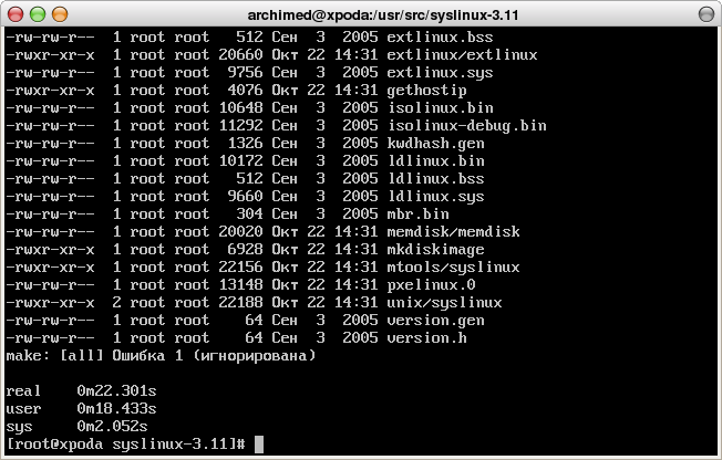 Рисунок 1: Собирается syslinux. Недолго, благо P4-2,8