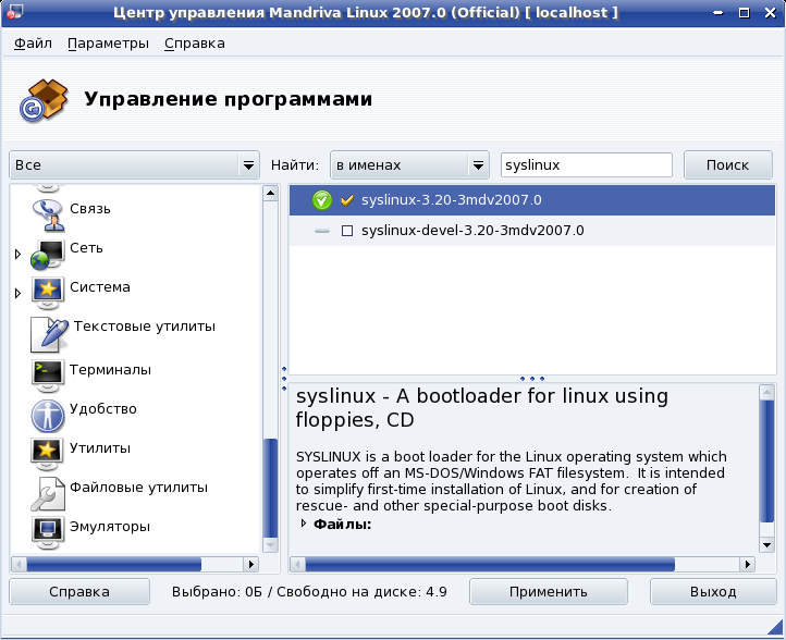 Про установку системы на флэшку. С Мандривой - не знаю, а Debian, по крайней мере Sarge, спокойно ставится на гиговую флэшку. Процесс установки ничем не отличается от обычного, просто нужно до загрузки с СД воткнуть флэшку и потом в инсталляторе выбрать ее как раздел, куда будем ставить. | | |