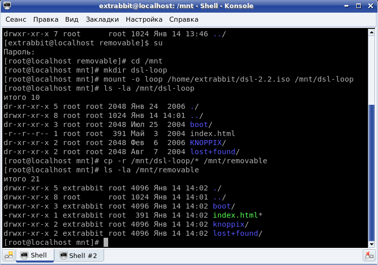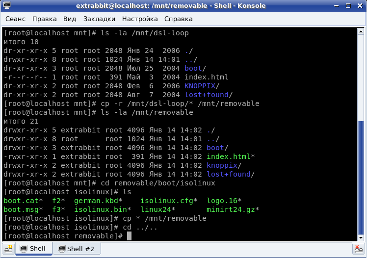Абсолютно так же, как и DSL (DSL основан на Knoppix). Копируем кноппикс/конфиг из /mnt/removable/boot/isolinux/isolinux.cfg перемещаем в /mnt/removable/syslinux.cfg и пускаем syslinux. | | |