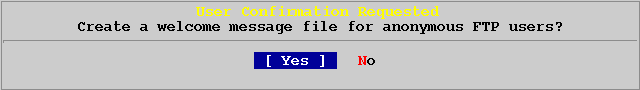 Чтобы разрешить анонимный FTP доступ, выбирите [Yes] и нажмите ENTER. После чего у вас появится экран подобный следующему: