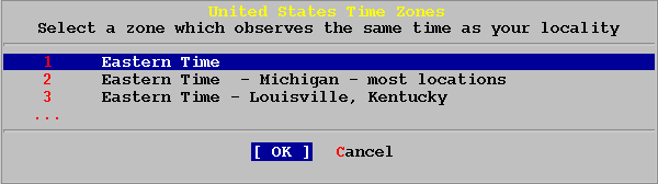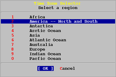 Выбираете соответсвующую временную зону и нажимаете ENTER. Здесь тоже приведена лишь часть из возможных значений полной диаграммы.