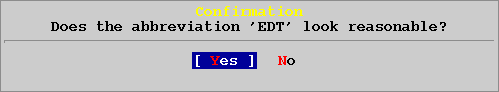 Выбирите [Yes] и нажмите ENTER для настройки временной зоны.