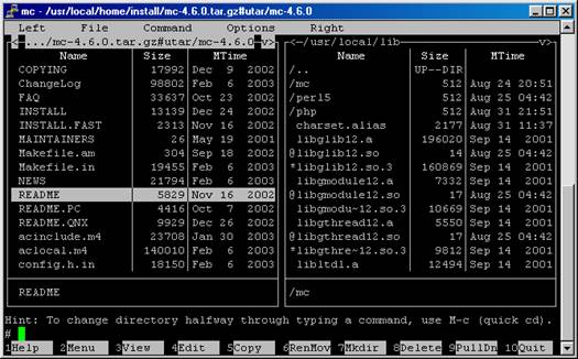 МС - это файловый менеджер со многими утилитами (сильно похож на Norton Commander NC - его многие знают, особенно пользователи MS - DOS ). Я его почти сразу начал использовать - отличное решение для пользователей командной оболочки UNIX систем. Есть конечно и альтернативы, но сейчас речь пойдёт ни о них.