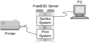 Although LPR is a time-tested and truly cross-platform printing solution, sites with a majority of Windows clients running Microsoft Networking have an alternate printing mechanism--Samba. Samba can provide print services to clients running SMB-compatible network clients. With a running Samba installation, the administrator may "share out" printers as well as filesystem directories from the FreeBSD system.