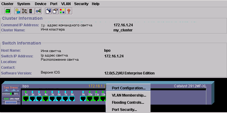 После того, как вы присвоили IP коммутатору, то вы можете конфигурировать его через веб-интерфейс с помощью Cisco Visual Switch или через консоль (или через Telnet)