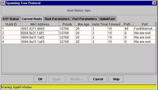 | Forward Delay | Число секунд(4-200), когда порт изменяет своё состояние с состояния исследование(learning) в состояние передача пакетов(forwarding) при изменении конфигурации. Это как раз то время, когда у порта мигает желтый индикатор при присоединении или отсоединении сетевого кабеля. |