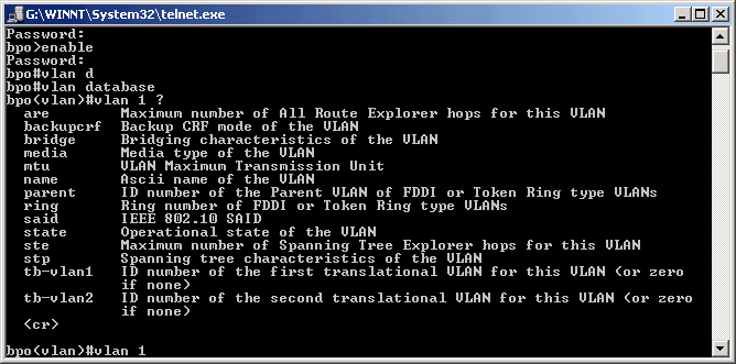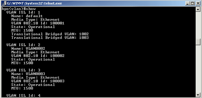 #vlan database (vlan)# (vlan)#show - для показа состояния vlan на данном свитче: