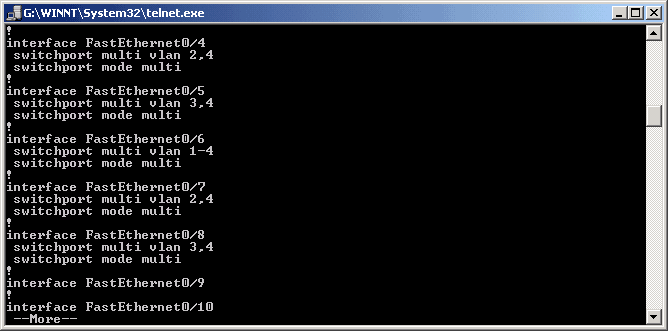 --more-- нажимайте пробел для опускания текста вниз на строку. Итак, вы набрали show running-config и здесь отобразится
