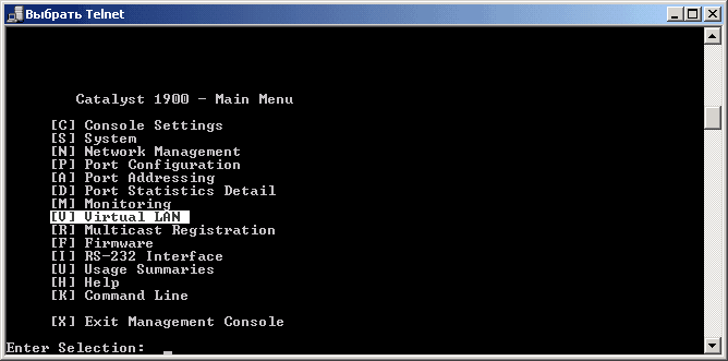 Для настройки VLAN нажмите клавишу V и увидите меню настройки VLAN:
