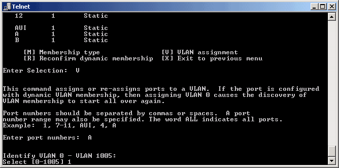 впервые эту VLAN используете): для этого в основном меню VLAN нажмите A и следуйте инструкциям: