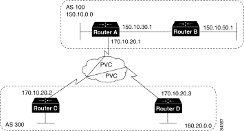 !Router A router bgp 100 neighbor 150.212.1.1 remote-as 100