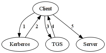 На всякий случай, кратко о работе протокола Kerberos. Если Client желает связаться с Server, то