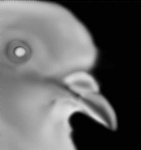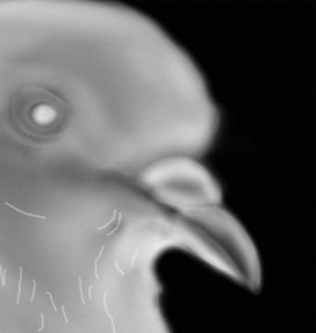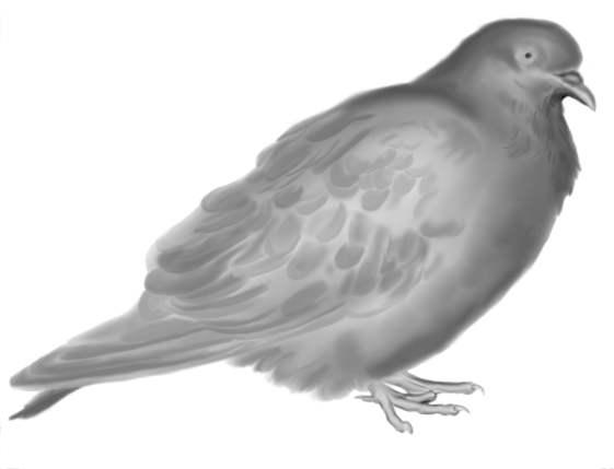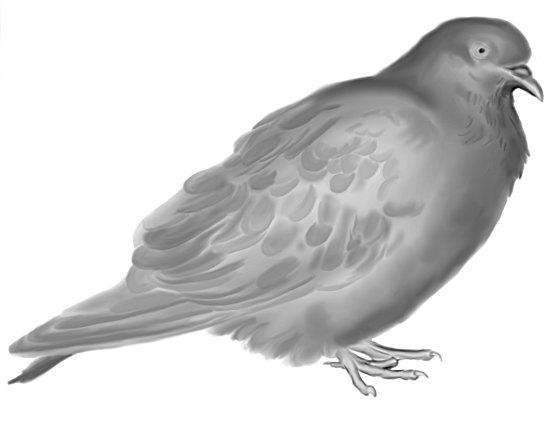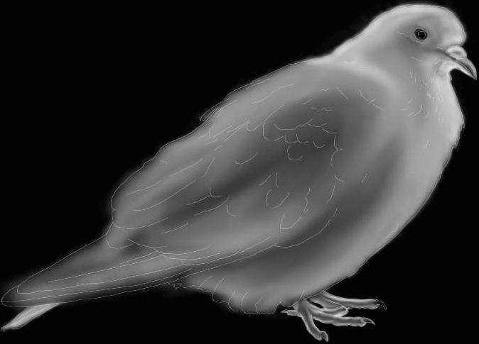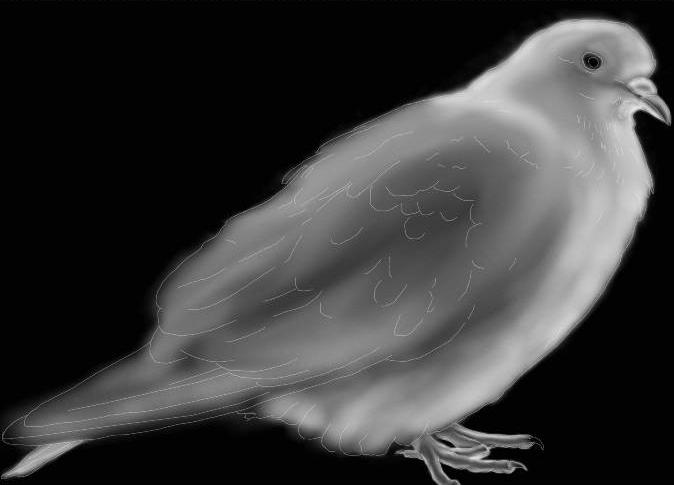 Голубь начал приобретать признаки формы, но все еще остается плоским и не выразительным. Откладываем в сторону "палец" и опять беремся за "аэрограф". Добавляем рельефности, тем частям которым ее не хватает.