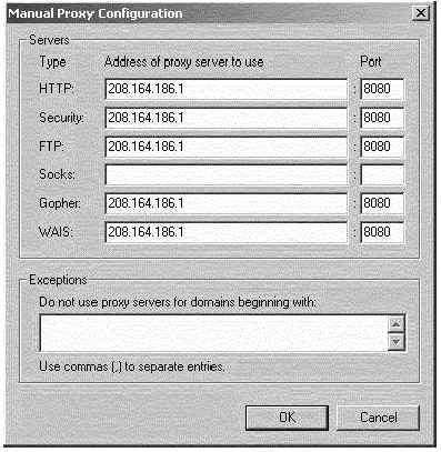 Если вы решили использовать Squid как кэширующий прокси сервер и позволять всем пользователям использовать его для доступа в Интернет, вы должны настроить соответствующим образом броузеры пользователей, чтобы они брали информацию со Squid, вместо прямого обращения в Интернет.