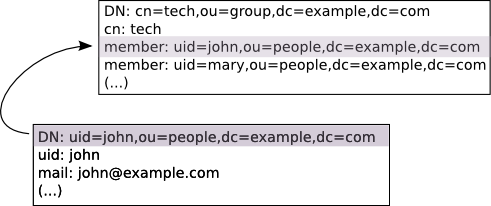 В следующем примере, при установке проверки уникальности для атрибута mail, в ходе выполнения операций add, modify или modrdn поддерево будет сканировано (в указанном при настройке диапазоне поиска) на наличие записей с тем же значением атрибута mail, что и присутствует в запросе. Если найдётся хотя бы одна такая запись, запрос будет отвергнут.