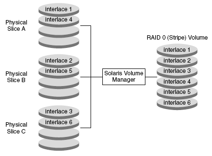 # metainit d20 -r c1t0d0s2 c2t0d0s2 c3t0d0s2