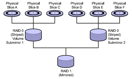 SVM в своей работе оперирует виртуальными логическими дисками, которые называются томами (volume) либо, исторически сохранившимся названием, - метаустройствами (metadevice). Эти логические устройства прописаны в системе в /dev/md/dsk(╚блочный доступ╩) и /dev/md/rdsk(╚прямой доступ╩) под названием √ d<номер_устройства>, и могут создаваться как из физических дисков или их частей, так и из самих логических дисков, созданных SVM.