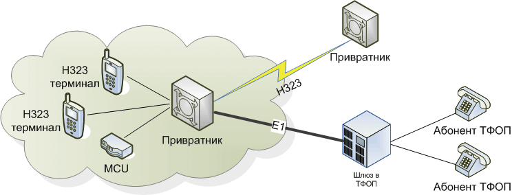[6] Для сетей сетей H323 наличие "привратника" не является обязательным. В этом случае H323-устройства работают в режиме Peer to Peer и самостоятельно разрешают имена в IP-адреса.