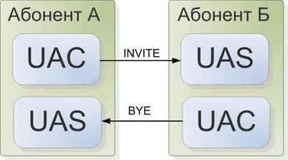 n агент-сервер (UAS - user agent server) - принимает запросы и посылает ответы.