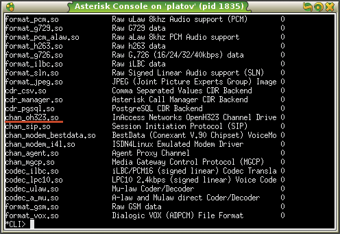 Модуль chan_oh323 должен присутствовать в списке загруженных модулей (см. рис. 1).