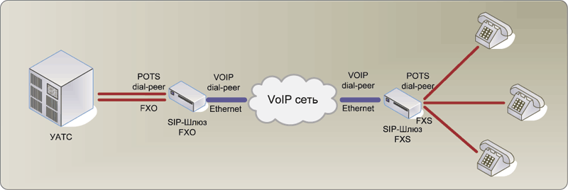Только что мы сказали, что все звонки, приходящие на шлюз и начинающиеся с номера "9", должны уходить на первый порт FXO, ассоциированный с dial-peer 0. При звонках из ТФОП на указанный FXO-порт шлюз будет аутентифицироваться на Asterisk с использованием указанных имени пользователя и пароля. Правда, для этого устройству предварительно необходимо указать, где именно находится Asterisk, которому будут передаваться звонки из ТФОП. Опишем VOIP dial-peer: