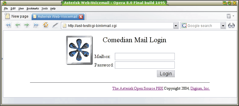 Откроем ваш любимый браузер и введем URL только что установленного интерфейса (в моем случае это будет http://ast-test/cgi-bin/vmail.cgi). Если все было сделано правильно, то мы увидим следующее (см. рис. 1).