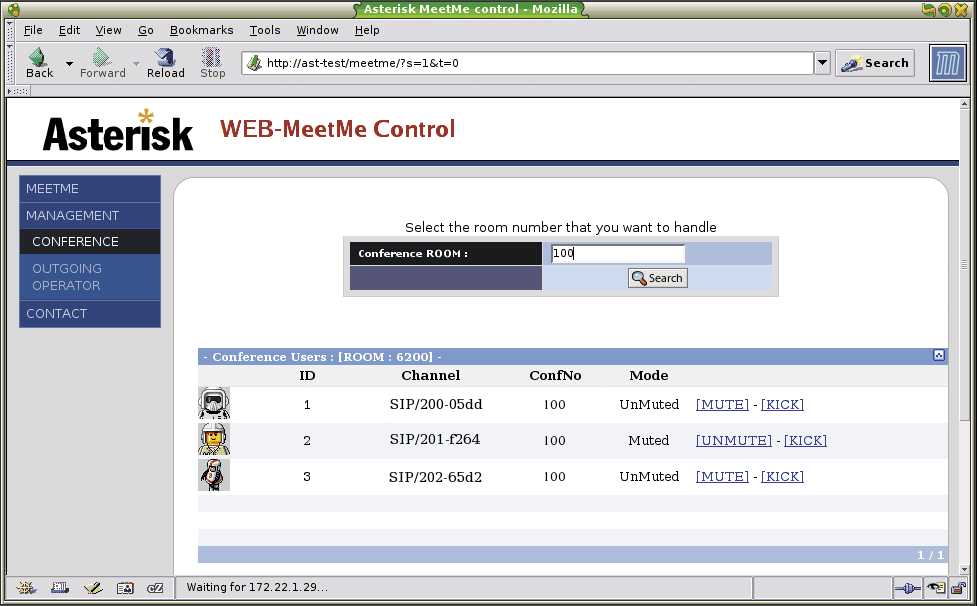 Кроме того, для нормальной работы с версией Asterisk 1.0.9 мне пришлось закомментировать строку 113 (вызов break) в файле conf_control.php.